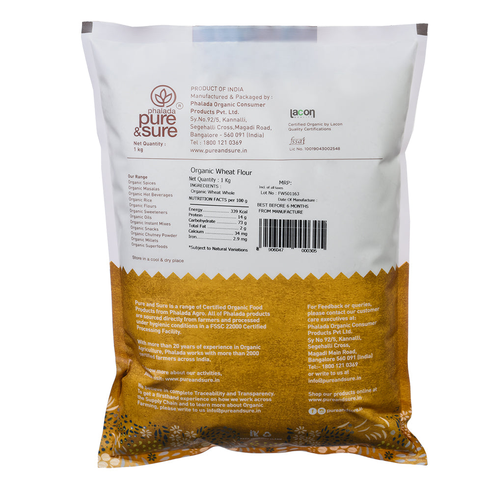 100 % Certified Organic Wheat Flour, made from the finest quality wheat sourced from certified organic farms across India. Whole wheat flour and no Maida Grown without use of any chemicals, pesticides or insecticides |